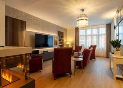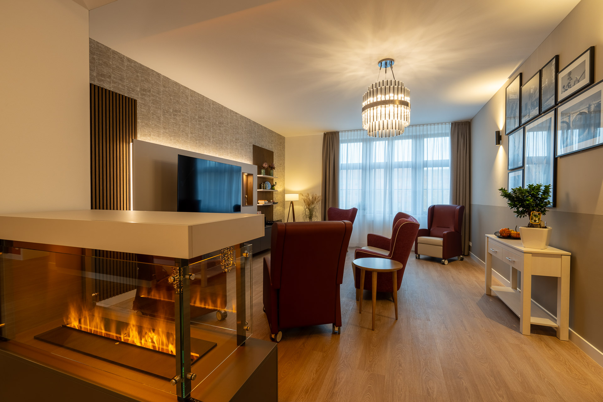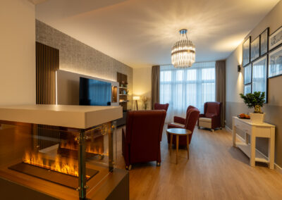 Valida ist sehr hochwertig und modern eingerichtet. Im Zentrum der Wohngemeinschaft erinnert der Essbereich an ein Kaffeehaus. Ein Kaminzimmer lädt zum gemütlichen Verweilen ein.